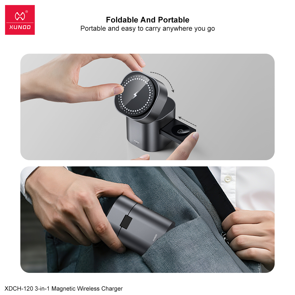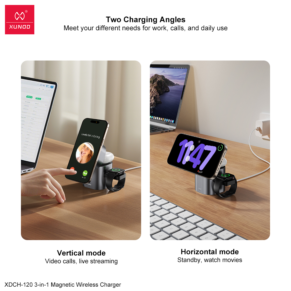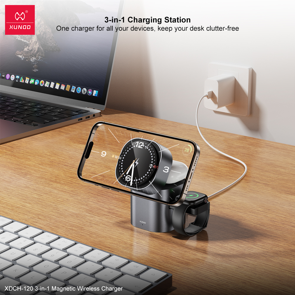 无线快充,强磁吸附,三合一设计,适配更多设备充电。